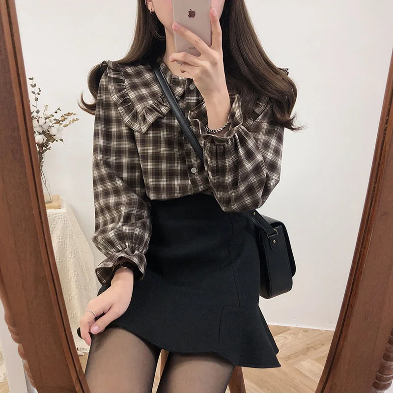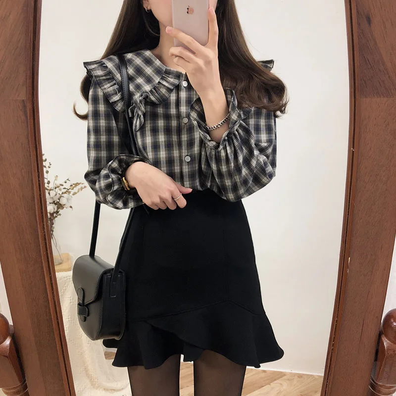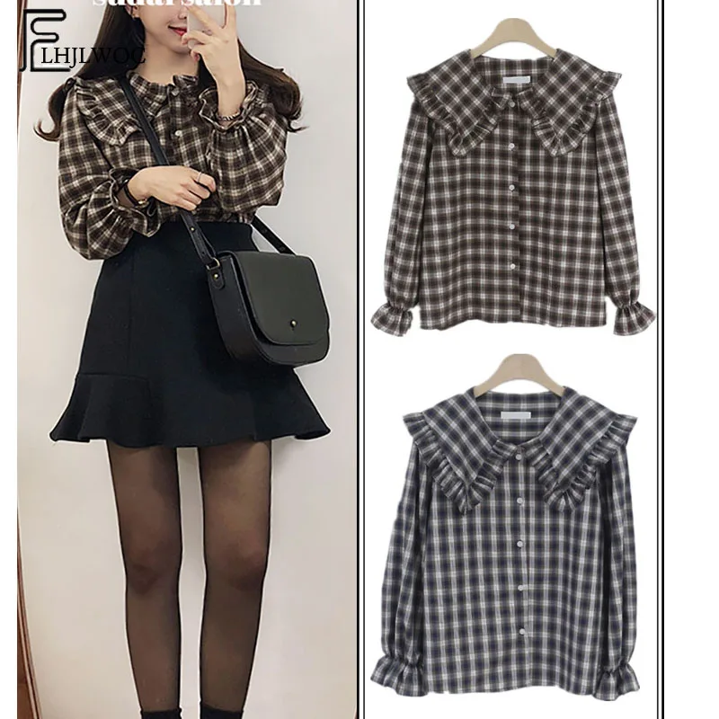 Very best 2019 Spring Autumn Basic Shirts Blouses Women Japan Preppy Style Design Ruffled Tops Ruffled Peter